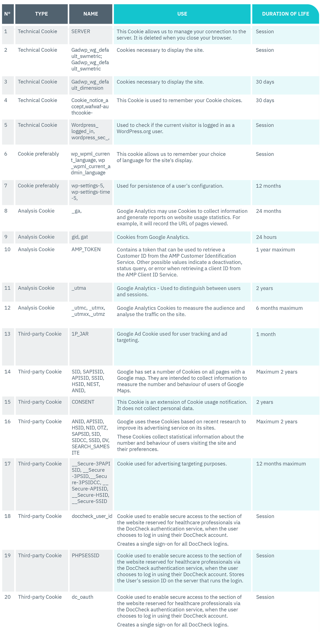 Cookies present on the Website are kept for a limited period of time and for the time periods indicated in the table above, in accordance with the applicable regulations in this regard.